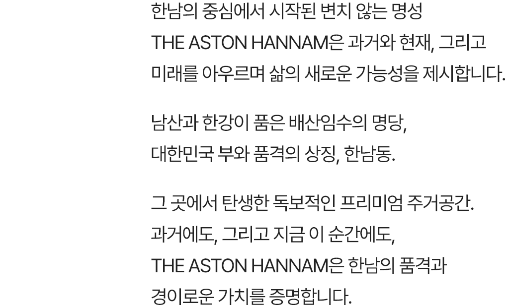 한남의 고급스러운 품격과 유구한 헤리티지를 담아