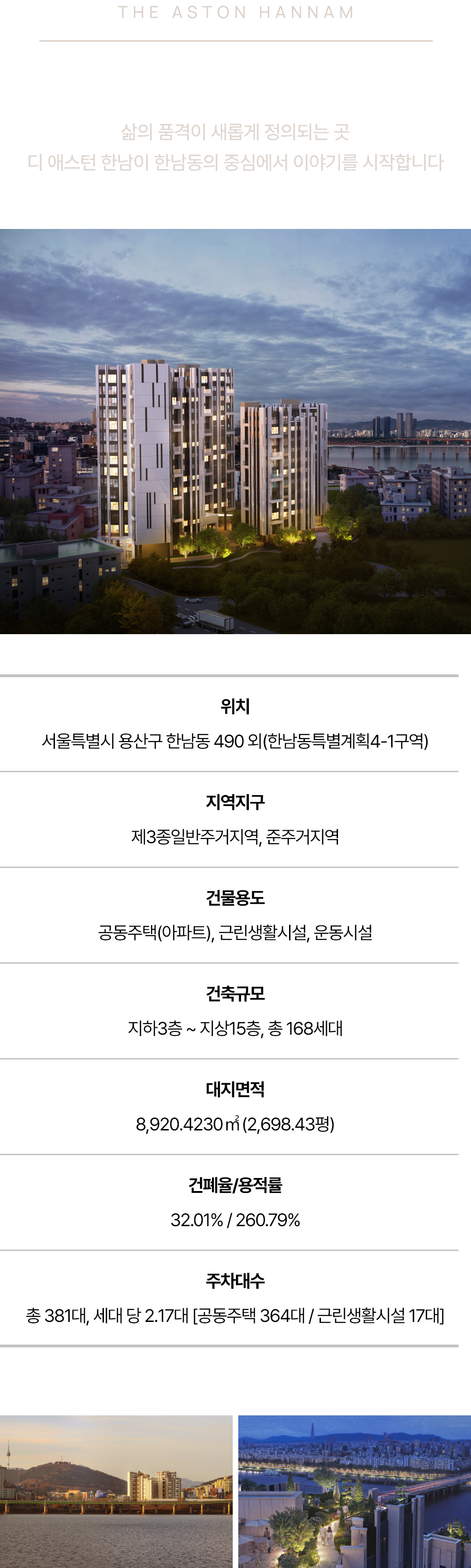 디 애스턴 한남이 한남동의 중심에서 이야기를 시작합니다